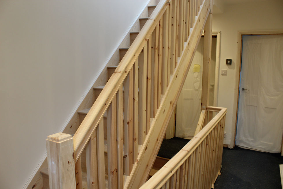 The ground floor renovations have involved creating a larger, open-plan area, making the whole house feel so much bigger. Existing floors were stripped and new underfloor heating was installed, to replace radiators. The dated existing flat roof was also removed, to allow for a new mono-pitched roof. 3 sizeable Velux windows were installed to maximise natural lighting into the property. The existing, poorly laid out staircase was also completely removed with the St Edmundsbury Homes carpentry department designing and installing a fresh new staircase, transforming the hallway and creating so much more space.